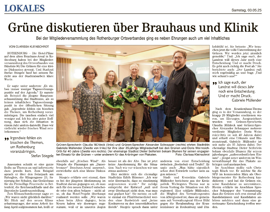 Mit Blick auf die Kommunalwahl 2026 wurde deutlich: Jetzt ist die Zeit, unsere grünen Visionen für Rothenburg zu schärfen und in die Bevölkerung zu tragen. Klimaschutz, nachhaltige Mobilität, bezahlbares Wohnen und eine lebendige Stadtkultur – das sind nur einige der Themen, bei denen wir den Unterschied machen können.